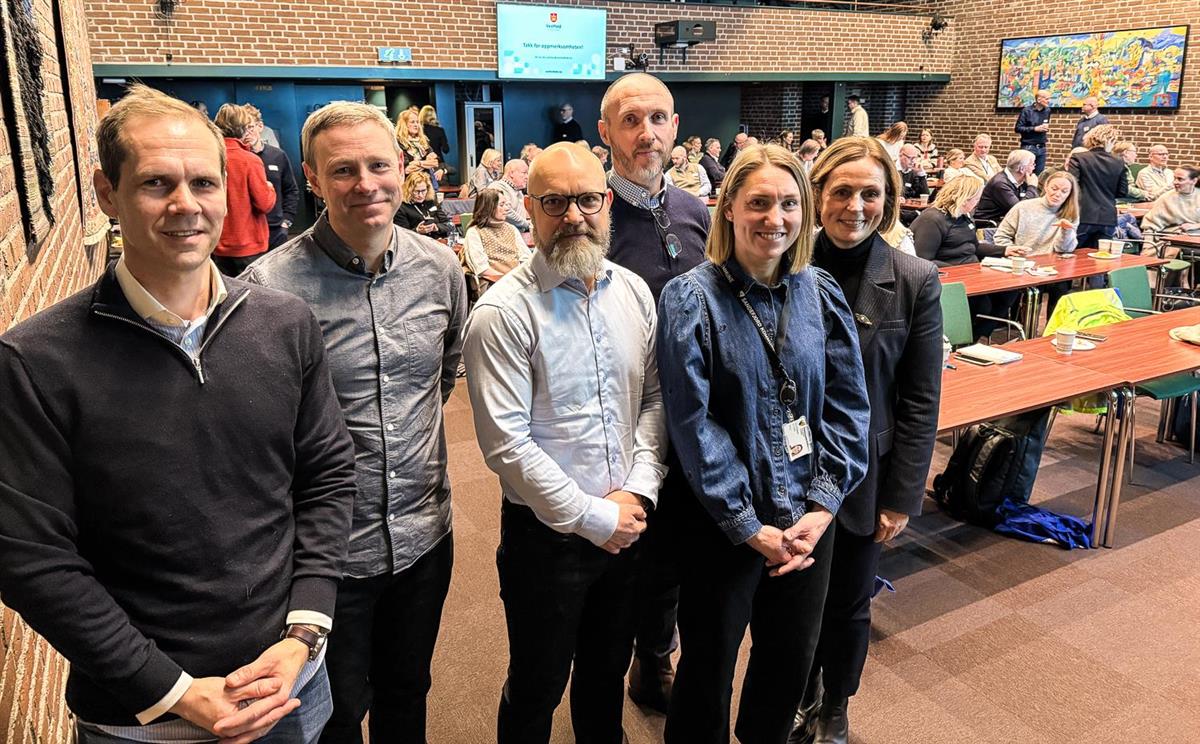 F.v. David Bakke Haugen, Anders Tønnesen, Hans Munksgaard, Lars Sandnes, Signe Moland, Ingebjørg Tollnes.