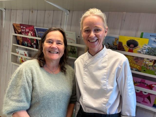 Hanne B. Gustavsen og Eidi Godaker er stolte av samarbeidet de har fått til – og håper flere barnehager lar seg inspirere. – Det finnes mange kommunale kjøkken som kan være aktuelle samarbeidspartnere. Vi håper flere griper muligheten, sier de.