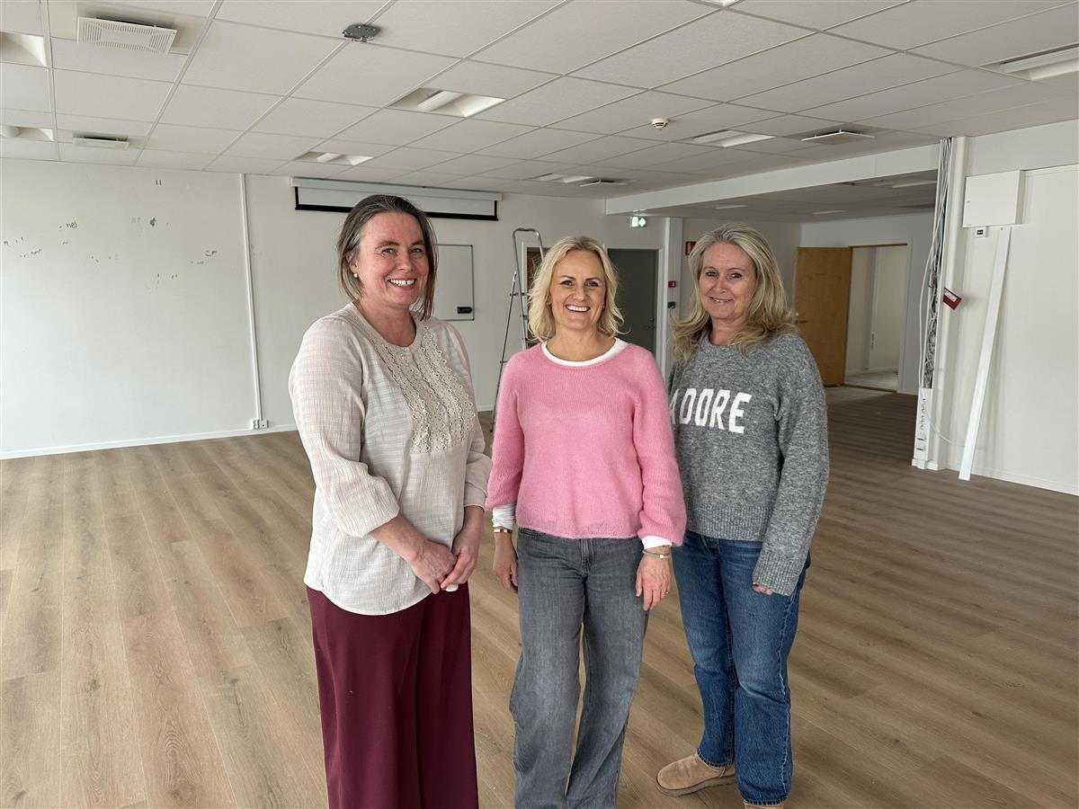 Snart innflyttingsklart. Seksjonsleder Veronica Trøim (til venstre) og kollegaene Janne Borch-Jenssen og Anne Cecilie Gretland Gundersen ser fram til å ta imot innbyggerne i de nyoppussede lokalene på brygga.