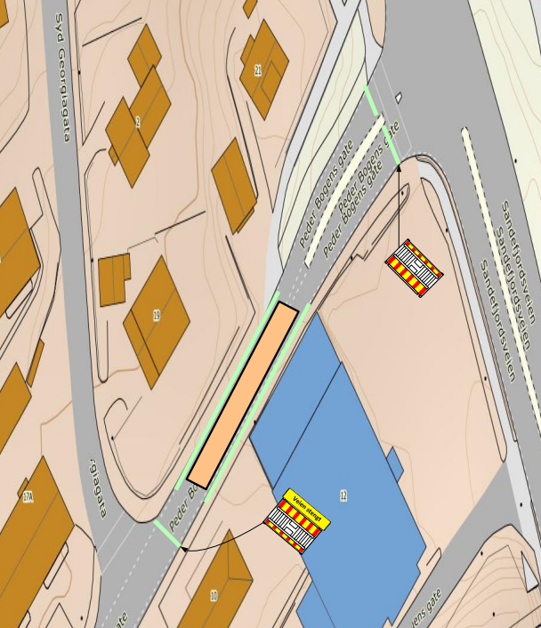 Fylkeskommunen melder til Sandefjords blad at flere bussholdeplasser blir berørt i perioden: