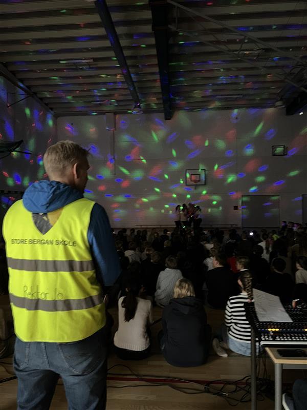 Rektor fulgte ivrig medBlant høydepunktene var dansenumre fra både 4., 6. og 7. trinn, vakker pianomusikk fra 5. og 6. trinn, et energisk fotballtrikseshow fra 6. trinn og et trompetinnslag fra 5. trinn. Dagen inneholdt også årets eneste sanginnslag, levert av elev fra 5. trinn. I pausen engasjerte konferansierene publikum med konkurranse om hvilken sang som ble spilt. De elevene som ble plukket ut til å komme opp på scenen fulførte sangene som ble spilt med god stil.
