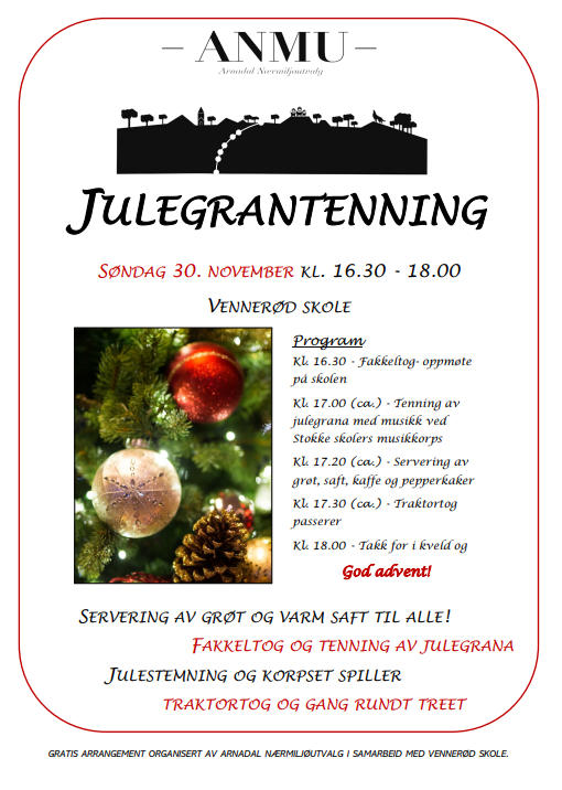 Nærmiljøutvalget inviterer til Julegrantenning søndag 30. november kl 16.30 - 18.00