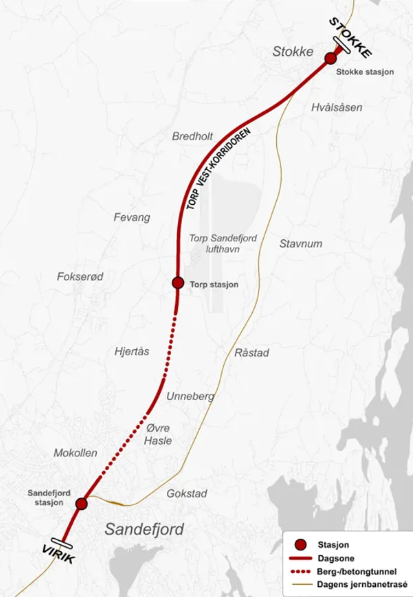 Kommunestyret vedtok i 2019 kommunedeIplan for dobbeltspor Stokke-Sandefjord. Da ble en rekke eiendommer langs korridoren båndlagt. Dette innebærer begrensninger på ny utbygging og andre større tiltak på de berørte eiendommene.