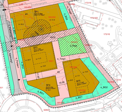 Områdeplanen er delt inn i fem byggeområder (SF1, SF2, SF4, SF5 og SF6), hvorav område SF6 er Folkets hus, som eies av Fagforeningens økonomiske fellesorganisasjon. SF6 blir derfor tatt ut av videre analyser.